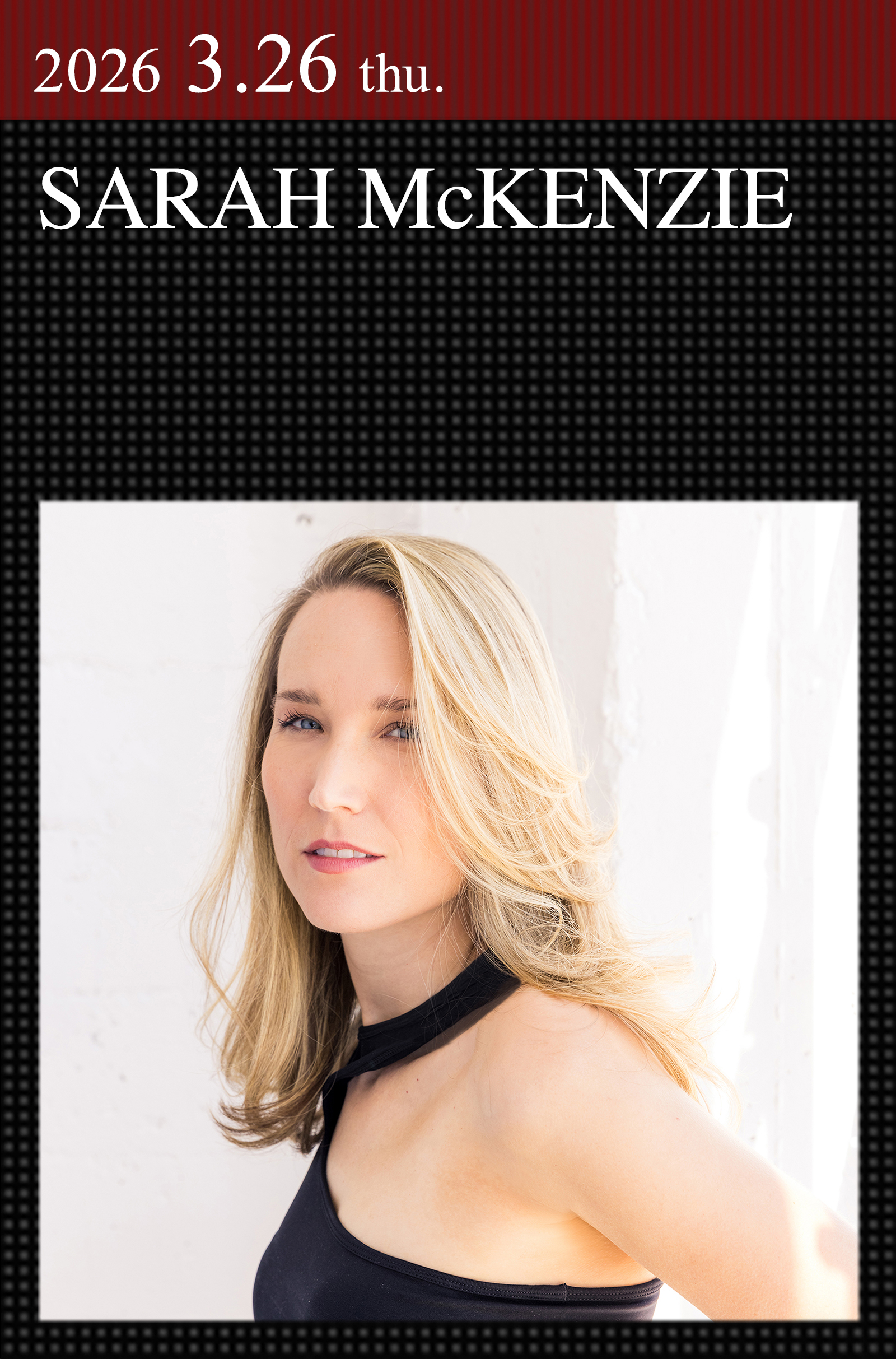 透明感あふれる歌声と軽やかなピアノの弾き語りでヴォーカル・ファンの心を掴むピアニスト/シンガー・ソングライター、サラ・マッケンジーがコットンクラブに帰ってくる。豪メルボルンに生まれ、パースでジャズの学士課程を修了した後、米バークリー音楽大学に留学。2017年には名匠ブライアン・バッカスをプロデューサーに迎えた『雨のパリで』で日本デビューし、初来日公演も実現。続いてリリースした『シークレッツ・オブ・マイ・ハート』『ウィズアウト・ユー』もロングセラーを続け、リリースしたばかりの新曲「City by the Bay」も話題に。スタンダード・ナンバーからオリジナル曲まで、そよ風に舞う花びらのように優しくシルキーな歌声で綴る極上のひととき、桜の季節を彩る最良のライヴになりそうだ。
