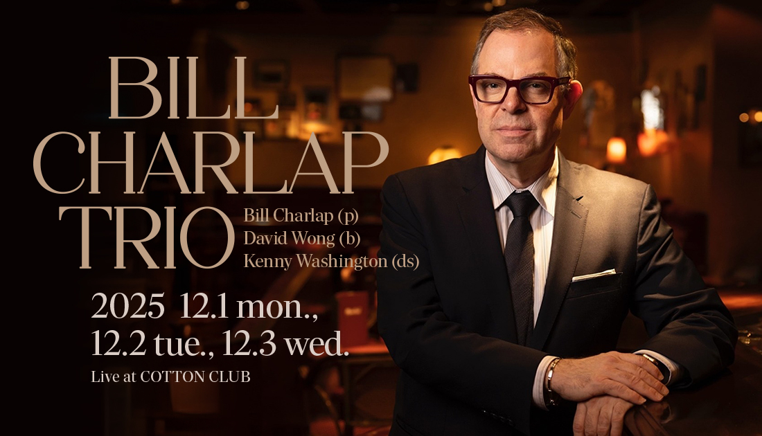 この夏、ディー・ディー・ブリッジウォーターとのコラボレーション・アルバム『Elemental』を発表。グラミー・ウィナーのピアニスト、ビル・チャーラップが7年ぶりにコットンクラブに登場する。大ヒット・ミュージカル「ピーター・パン」の作曲家ムース・チャーラップと歌手サンディ・スチュアートを両親に、数々のウディ・アレン映画の音楽を担当するディック・ハイマンをいとこに持つサラブレッド。幼い頃から音楽に親しみ、’80年代からジャズ・ミュージシャンとしての活動を開始。ブルーノートをはじめとする数々の名門レーベルに作品を残してきた。デヴィッド・ウォン、ケニー・ワシントンとのトリオで、どんな名曲を届けてくれるのか。ジャズの魅力を知り尽くした名手たちのプレイを至近距離で堪能したい。