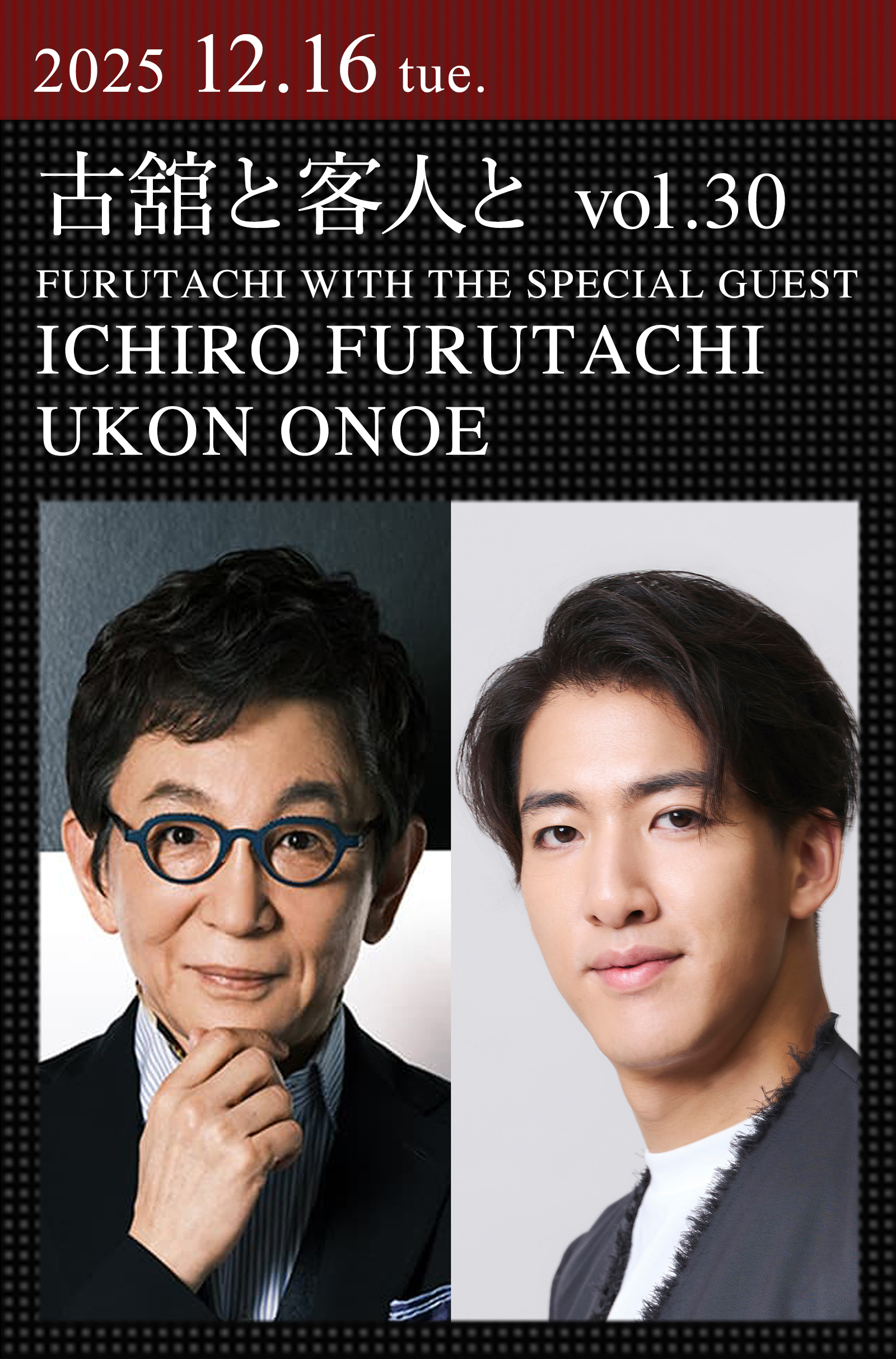 マイク一本で一人語りをする“トーキングブルース”など、「喋り屋」として確固たるポジションを築いてきた古舘伊知郎。2023年6月に新宿でスタートしたトークライヴ「古舘と客人と」が場所を移し、丸の内コットンクラブでの開催は22回目となる。今回は、歌舞伎俳優の尾上右近を迎えて、大いに語り合う。台本なし、演出なし、いわばオーディエンスの前でのプライベートトーク。古舘伊知郎がいま話したい人をゲストに迎え、サシで語り合う、その日・その時限りのプレミアムな雑談を、ぜひご一緒に!