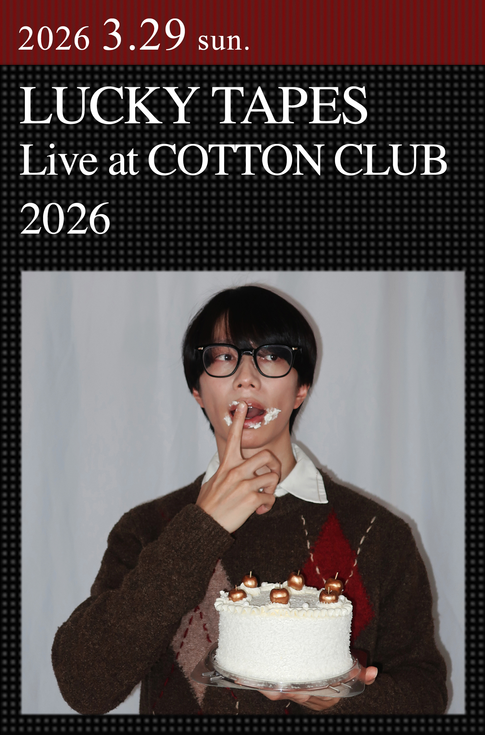 2025年にEP『1991』とシングル「真夏のトワイライト」をリリース。ソウルミュージックをルーツにした洗練されたサウンドで高い評価を集める高橋海のソロ・プロジェクト、LUCKY TAPESが3年ぶりに登場する。2015年4月にデビューシングルを発表し、現在まで5枚のアルバムをリリース。国内の主要フェスティバルにも軒並み出演のほか、アジアの地域でもライブを成功させてファンベースを築き、加えて、数多くのアーティストへの楽曲提供やアレンジ、プロデュースやポケモン「プロジェクトカビゴン」の公式楽曲の制作を手がけるなどその活動は多岐に渡る。2026年、デビュー10周年イヤーを迎えたLUCKY TAPES。そのスウィートでグルーヴィな音世界を、クラブならではの親密な空気の中で満喫したい。