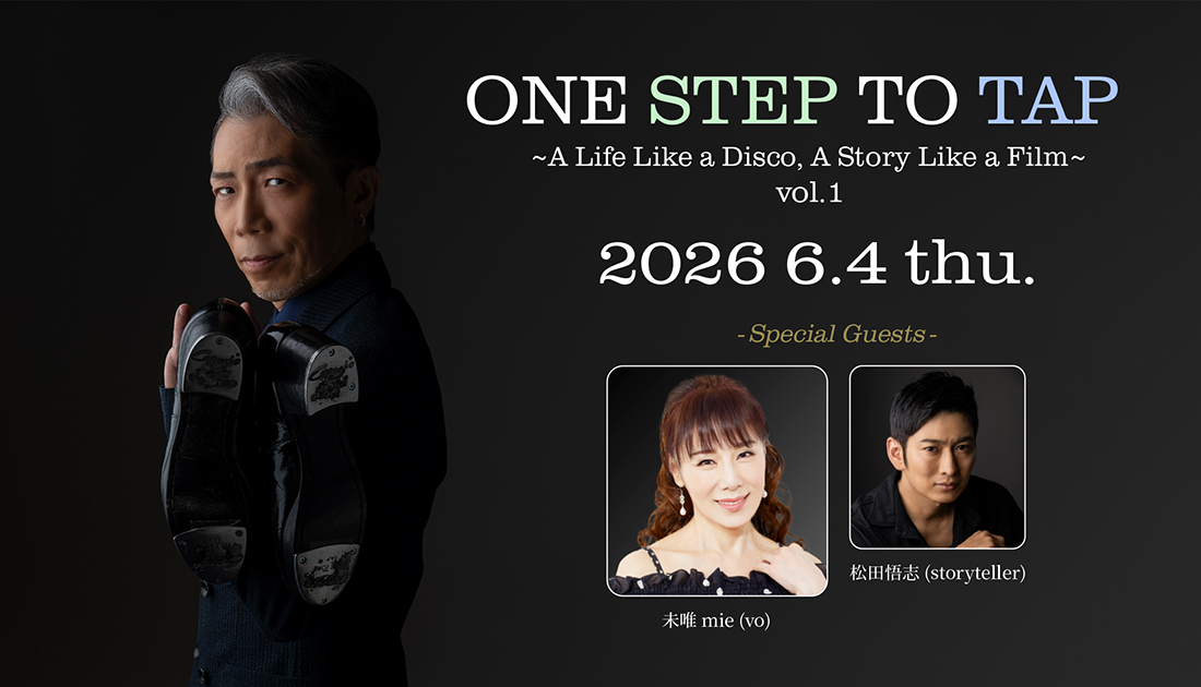 パフォーミング性を高めたオリジナルスタイル「Funk-a-Step」を考案し、タップダンスを日本に広めてきた第一人者、HideboH。彼がタップダンスを始めた6月4日、「ONE STEP TO TAP」と題したスペシャル公演を開催する。人生はディスコのように煌めき、映画のように展開する――その世界観を、ライヴならではの臨場感で描き出す。スペシャルゲストに未唯mieを迎え、時代を彩った名曲を艶やかに蘇らせる。さらに松田悟志がストーリーテラーとして物語を紡ぎ、観客を音楽と記憶が交差する旅へと誘う。激動の70〜80年代の音楽とリズムをテーマに、タップ、歌、語りが生む化学反応を、上質なクラブ空間で堪能したい。踏み出す一歩が、新たな物語を動かす。