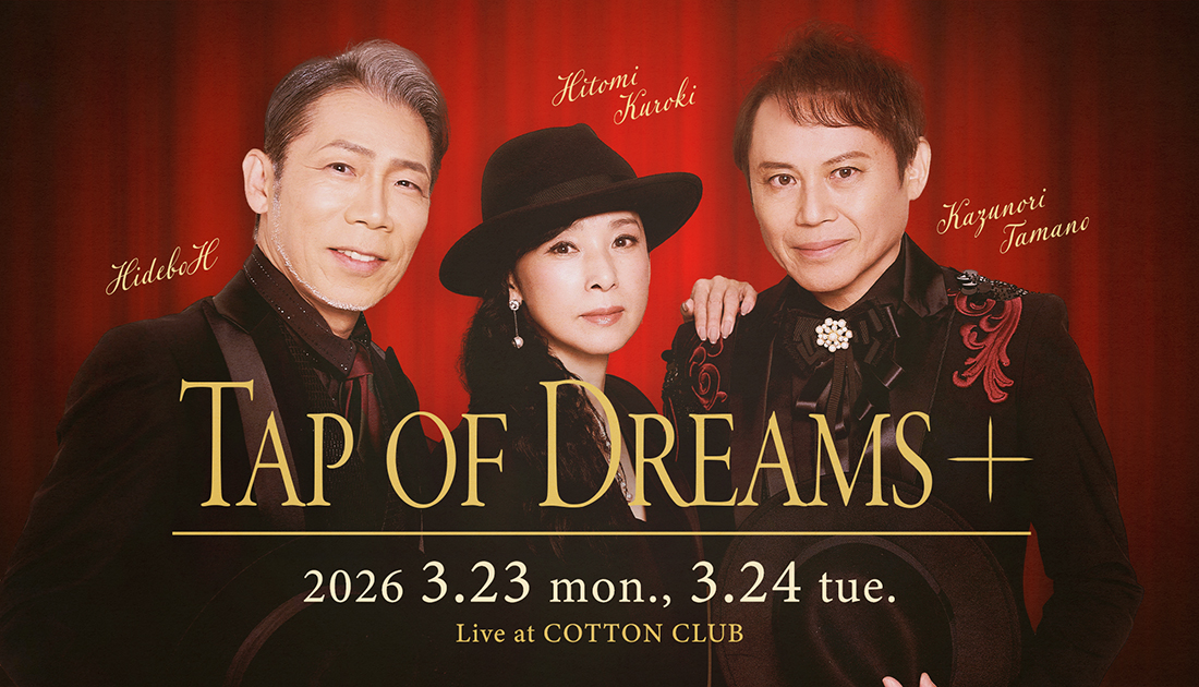 黒木瞳が熱望したステージが、ついに実現!日本のタップダンス界を牽引する第一人者・玉野和紀、自由で繊細な表現力を誇るHideboH、そして俳優としての表現力も光る黒木瞳の3人が集結。初めてのトリオによるパフォーマンスは、ここでしか見ることのできない特別なひとときです。デューク・エリントンゆかりの伝説的クラブ“コットンクラブ”を舞台に、タップダンスの軽快なリズム、息をのむようなダンスの瞬間、そして3人のトークが織りなす、多彩なステージになること間違いなし。この日限りのコラボレーションによって生まれるステージは、まさに一期一会。タップダンスの醍醐味を堪能しながら、黒木瞳が描く“心躍るひととき”をご体験ください。