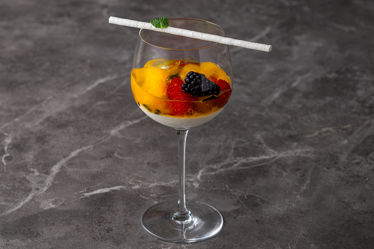 パンナコッタやフルーツの甘みを邪魔することなく、見事なバランスで溶け合います。