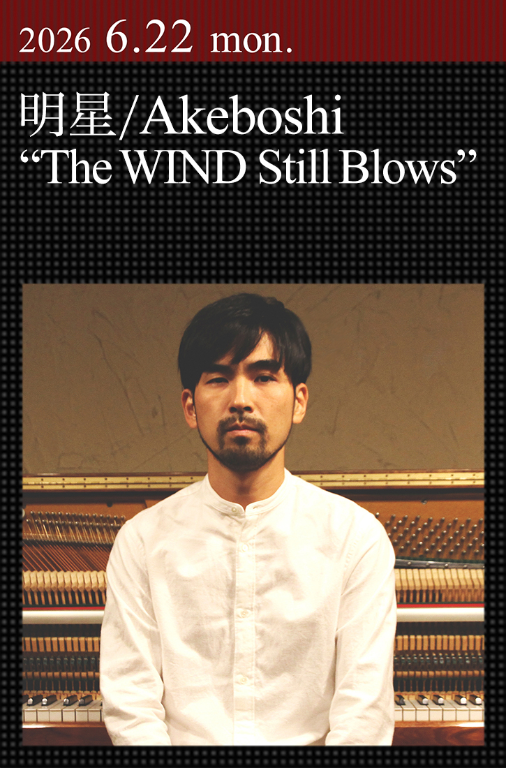 シンガーソングライターとして、また映画やCM音楽の作家としても活躍する明星/Akeboshiがコットンクラブ初登場。昨年末に公開されたTHE FIRST TAKEでの「Wind」演奏動画は400万再生を突破し、国内外で大きな話題を呼んだ。さらに今年開催された各地でのライブも完売が続出するなど、改めてその存在感を示している。そんな中決定した待望のコットンクラブ初公演では、THE FIRST TAKEでも見事な演奏を披露した酒井絵美(fiddle)、豊田耕三(Tin Whistle)、mouse on the keysの川﨑昭(ds)に加え、初期から明星/Akeboshiを支え続ける濱野泰政(b)、永田“zelly”健志(g)も参加。実力派ミュージシャンが揃う貴重なフル編成で、THE FIRST TAKE出演以降の歩みの集大成ともいえるステージを届ける。