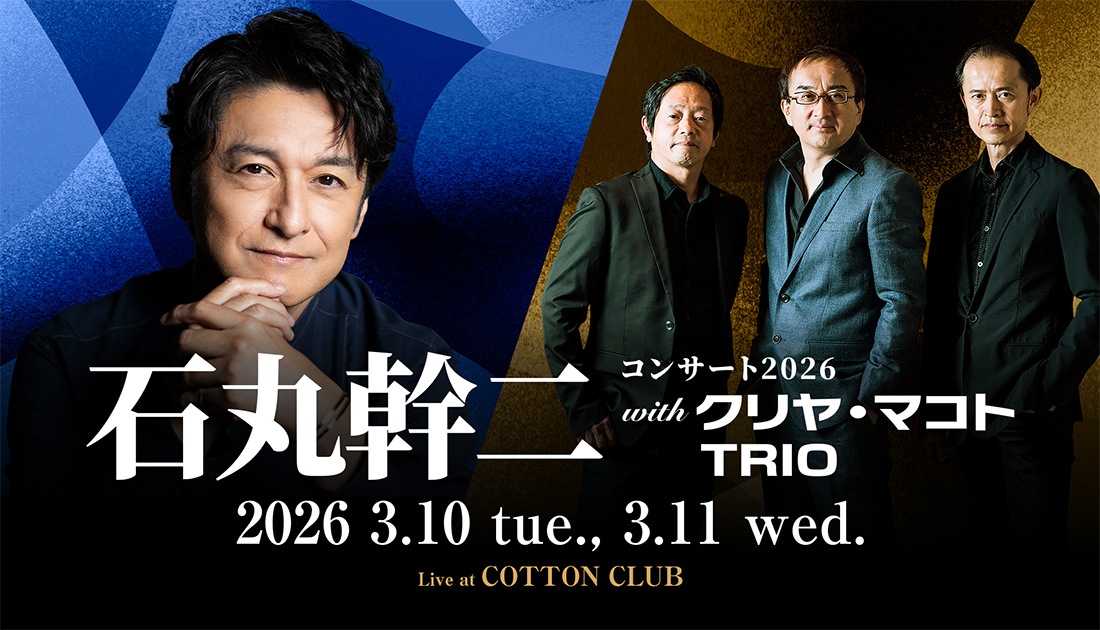 多彩な活動を続ける表現者と、国内屈指のジャズプレーヤーがライヴで出会う。石丸幹二がコットンクラブに初登場し、クリヤ・マコト率いるトリオと共に上質な音楽の饗宴を繰り広げる。石丸は東京音楽大学、東京藝術大学で学び、1990年から2007年まで劇団四季の看板俳優として活躍。2017年より『題名のない音楽会』、『健康カプセル!ゲンキの時間』の司会も務めている。クリヤは1990年代からワールドワイドな活動を展開、時にジャズという枠に収まらぬ多才ぶりを発揮し、ポップスの作編曲・音楽プロデュース、TVテーマ曲、映画音楽なども手がけている。2024年のアルバム『石丸幹二/with FRIENDS』でも好評を得た両者の共演を、クラブならではの臨場感と共に味わいたい。