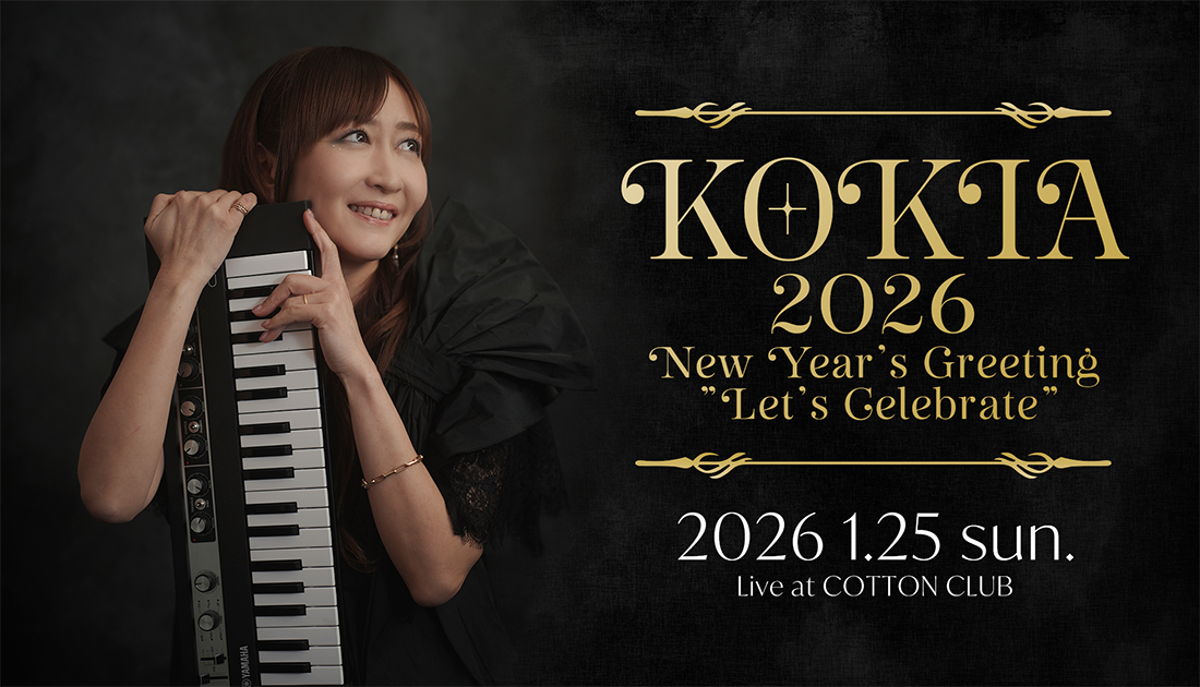 世界から高く評価されるボーダーレスな歌声。多くの人に音楽を通して「love & peace」を問いかけるシンガーソングライターのKOKIAが初登場となるコットンクラブで新年の幕開けを祝う。3歳からヴァイオリンを始め、高校・大学と桐朋学園で声楽を専攻。クラシックを学ぶ一方、自らが作詞・作曲をした楽曲を通して、音楽の持つ素晴らしさやその可能性をたくさんの人に伝えたいと感じ、大学在学中にデビュー。以降、自身の創作活動の他に、CMソングやプロデュース活動など、音楽的視野と活動範囲はさらに広がっている。KOKIAにとって2026年は、半世紀を生きてきたという特別な節目の年。人生の折り返し地点を迎えられる事への感謝をこめて、この日限りのプログラムを届ける。