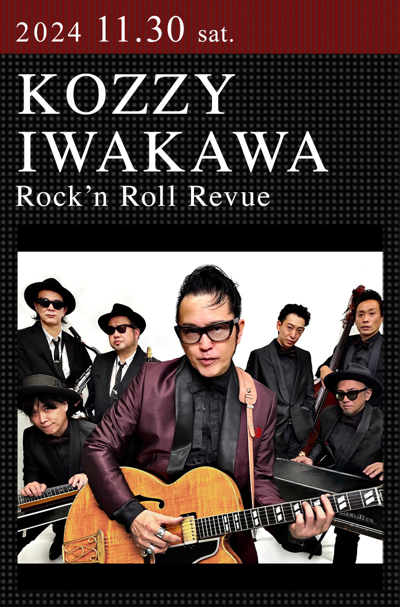 屈指のメロディ・メーカー、KOZZY IWAKAWAこと岩川浩二が初登場!1988年のデビューから “ROLLIE” “THE COLTS” “ザ・マックショウ”からソロワークまで、ロックンロール音楽の世界線を縦横無尽に渡り歩く彼が、自身の音楽ルーツから現在までの集大成をレヴュー形式で一気に魅せる“KOZZY IWAKAWA Rock’n Roll Revue”をコットンクラブで繰り広げる。サポートには高木克、Yama-chang & JOHNNY、ブギウギ・ケンタロー、UC、TOMOKI、AKIRAといった仲間たちが集い、さらにスペシャル・ゲストとして横山剣も参加予定。自身のルーツを探訪し伝承するソロ・アルバム『R.A.M』も大好評なKOZZY IWAKAWAによる、ジャンルを超越した“コージー・ワールド”に浸りたい。
