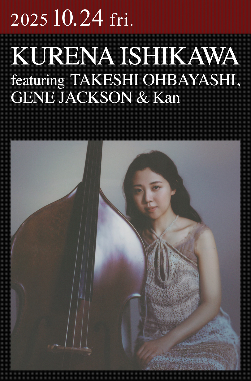 ジャズ・シーンに新風を吹き込むベーシスト&ヴォーカリストの石川紅奈が、敬愛するミュージシャンと共にソロ、デュオ、トリオ、カルテットと編成を変えながらお届けするスペシャル・プログラムを開催!高校1年生の夏にウッドベースを始める。2021年にコットンクラブに出演した際の「オフ・ザ・ウォール」(マイケル・ジャクソン)の弾き語り映像はYouTubeで220万回超再生を記録した。ピアニスト壷阪健登とのユニットsorayaでの活動も行うなか、2023年には、小曽根真プロデュースによるデビュー・ミニアルバム『Kurena』をリリース。さらなる広がりと発展を続ける石川紅奈の、最新の音楽世界をライヴで楽しみたい。