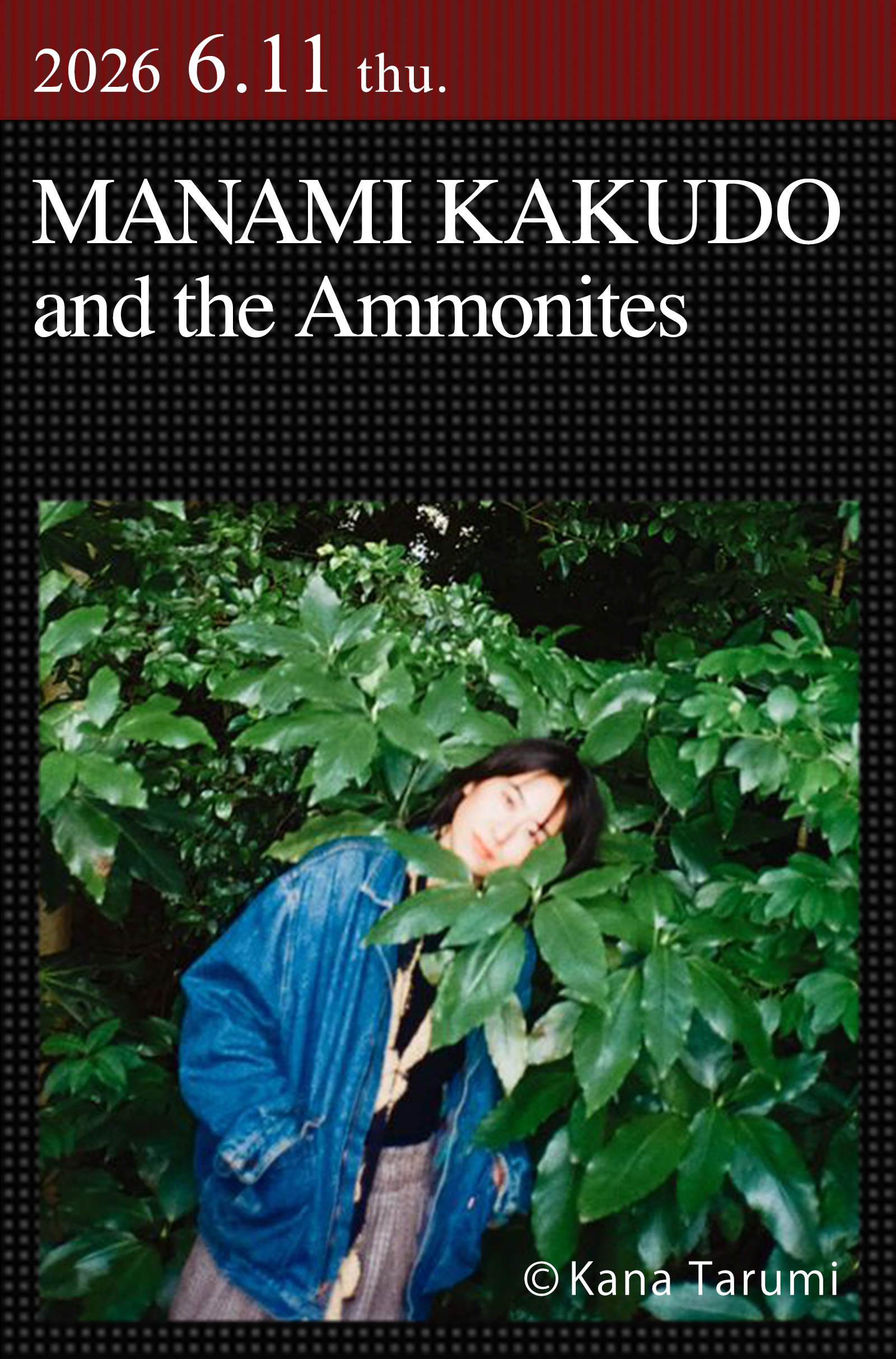 打楽器奏者/シンガー・ソングライターの角銅真実が、新プロジェクト“the Ammonites”を率いて登場する。長崎県で生まれ育ち、マリンバをはじめとする多彩な打楽器に加え、自身の声や言葉、身の回りの物を用い、楽曲制作からパフォーマンスまで自由な表現活動を展開。近年は、アニメ映画『ホウセンカ』(2025)のエンディングテーマ、2026年4月放送のTVアニメ『クジマ歌えば家ほろろ』では劇伴およびエンディングテーマを手掛け、4年ぶりのソロアルバム『Contact』もロングセラーを続けている。本公演には、石若駿(per,ds)、多井智紀(vc)、池田抄英(sax)、千葉広樹(b)が参加。ライヴやリリースの実績がまだない新プロジェクトによる、実験的かつ冒険的な音世界が繰り広げられる。