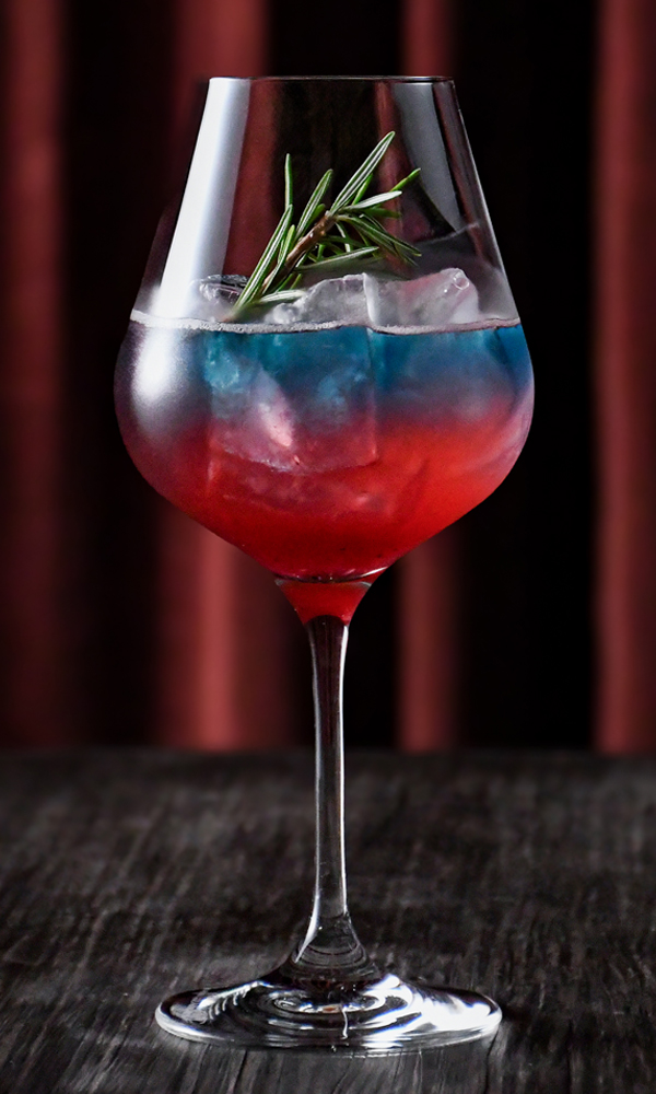 (ジン/ブルーキュラソー/ブレンドハーブティー/オレンジ/クランベリー/ジンジャーエール/ブラックペッパー/ローズマリー)