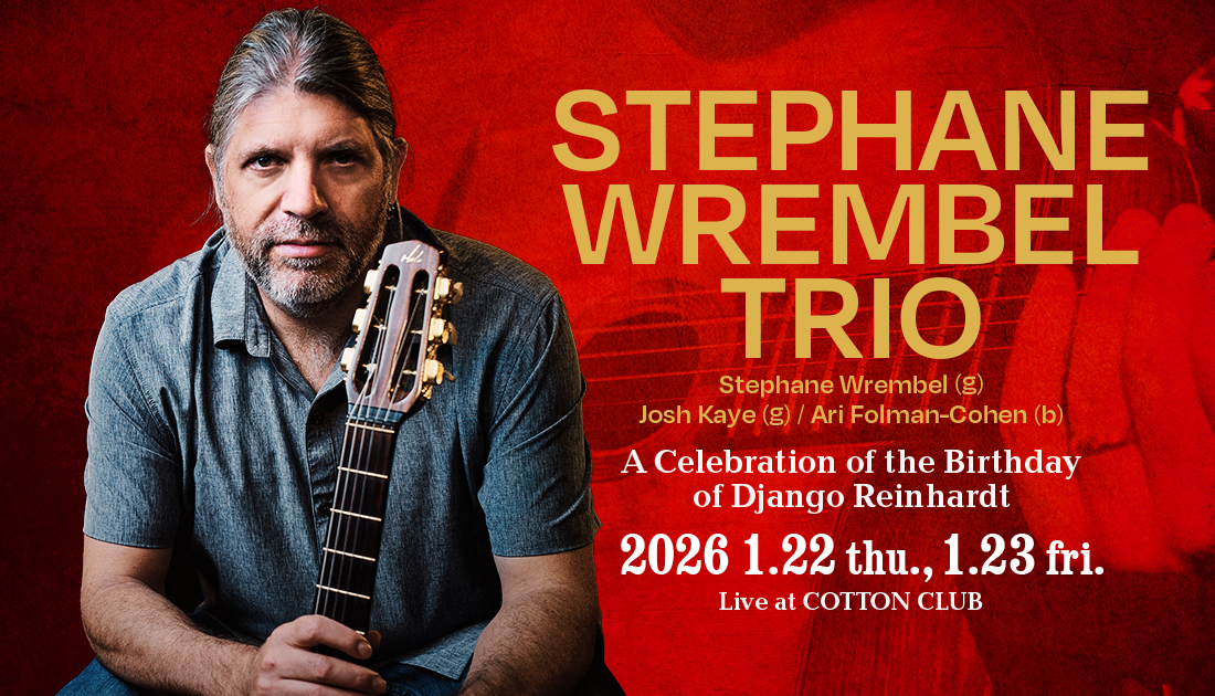 ジャズ、ジプシー・スウィング、ワールド・ミュージックを融合した独自のスタイルで魅了するギタリスト、ステファン・レンベルがコットンクラブに登場。フランス・フォンテーヌブロー出身の彼は、自身名義および別名義「The Django Experiment」で、これまでに20枚を超えるアルバムをリリースしており、最新作は『Django New Orleans II: Hors-Série』となる。ウディ・アレン監督の映画『ミッドナイト・イン・パリ』では、「Bistro Fada」を含むオリジナル楽曲が使用され、2012年のアカデミー賞では、ハンス・ジマー率いる“オールスター・バンド”の一員として、エスペランサ・スポルディングやファレルらと共演した。敬愛するジャンゴ・ラインハルト(1910–1953)の誕生日である1月23日を含む、ステファンにとって初のコットンクラブ公演。ギターの魔術師が紡ぐサウンドの真髄を、ぜひ至近距離で体感してほしい。