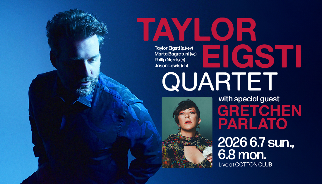 ジュリアン・ラージ、グレッチェン・パーラト、ケンドリック・スコットらと共演。2度のグラミー賞に輝くピアニスト、テイラー・アイグスティがリーダーとしてコットンクラブ初公演を行う。4歳でピアノを始め、リーダー作として9枚のアルバムを発表、サイドマンとしても80枚以上のアルバムに参加。2023年リリースの『Plot Armor』では自身2度目のグラミー賞を獲得した(最優秀コンテンポラリー・インストゥルメンタル・アルバム部門)。今回の公演では自身のカルテットを軸に、グレッチェン・パーラトをスペシャル・ゲストに迎えたパフォーマンスも披露。映画音楽や交響楽団とのコラボレーションにも才能を発揮するテイラーが、盟友たちと繰り広げる最新ステージを見逃すわけにはいかない。