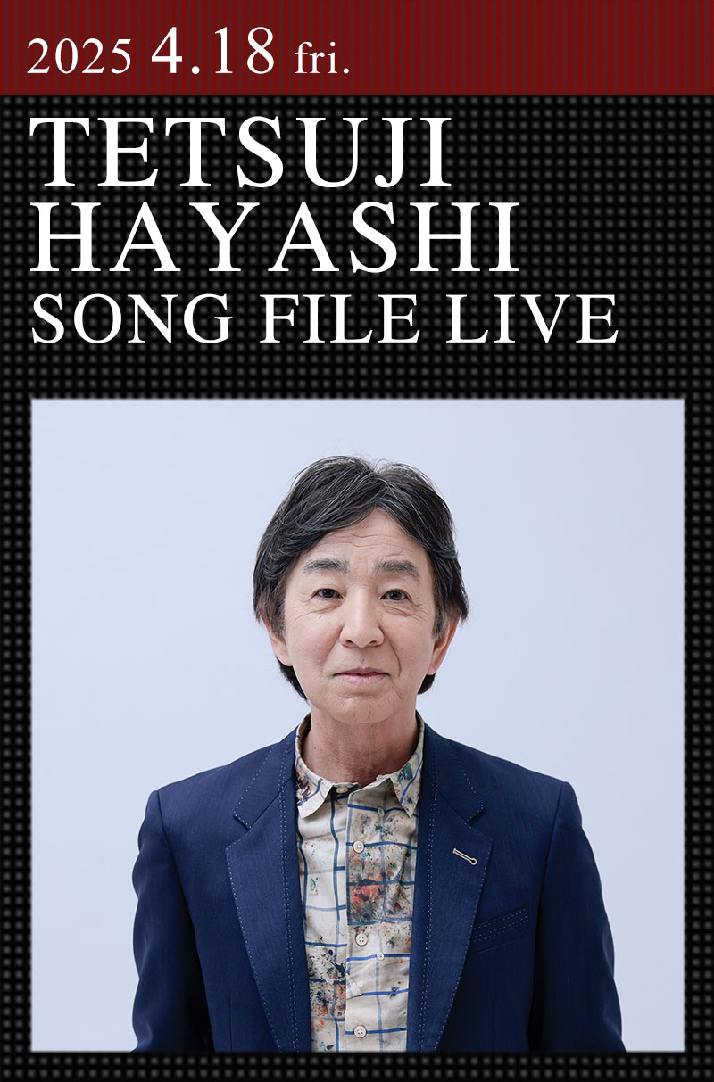 YouTube5億回、Spotify3億回、いまもその再生回数を重ねる世界的ヒット「真夜中のドア -Stay with me-」をはじめ、「北ウイング」、「悲しい色やね」、「悲しみがとまらない」、「天国にいちばん近い島」、「思い出のビーチクラブ」等、今なお多くのリスナーを魅了する、日本の80年代シティポップの数々の名曲を送り出した作曲家・林哲司。50周年のアニバーサリーイヤーを経て自身の作品を披露していく恒例の「SONG FILE LIVE」シリーズ、2025年度の第1回は4月に発売が予定されている初のソロ・ベスト・アルバム『Yesterday Alone』のリリース記念ライヴ。この日は新曲に加え数多くのヒット曲の自作自演を満喫できるとともに、新作アルバムを発売日前に手に入れることのできる貴重な1日となる。